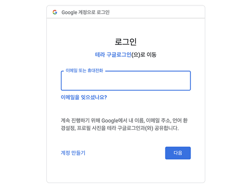 아래와 같이 구글 로그인 창이 뜨고,