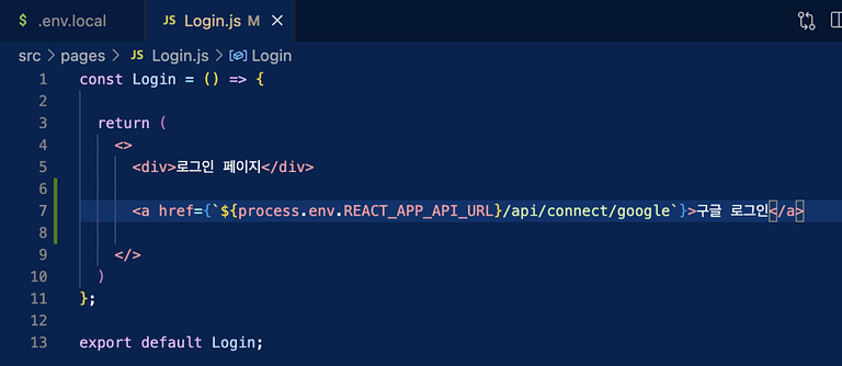 <a href={`${process.env.REACT_APP_API_URL}/api/connect/google`}>구글 로그인</a>