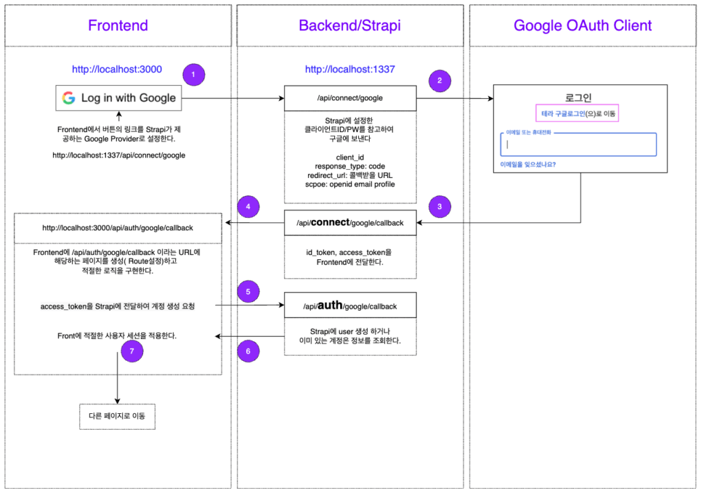 Google OAuth, Strapi 까지 모두 통과했으나, Frontend 구성이 제대로 안되어 있는 상태입니다.