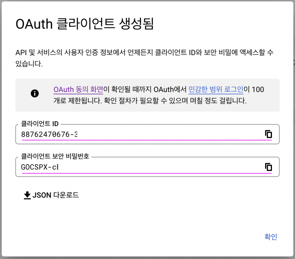 Google OAuth 클라이언트 설정