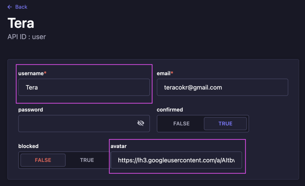 하지만 현재버전의 Strapi를 이용하여 구현하면, username에 Tera가 아니라 teracokr이 들어갑니다.